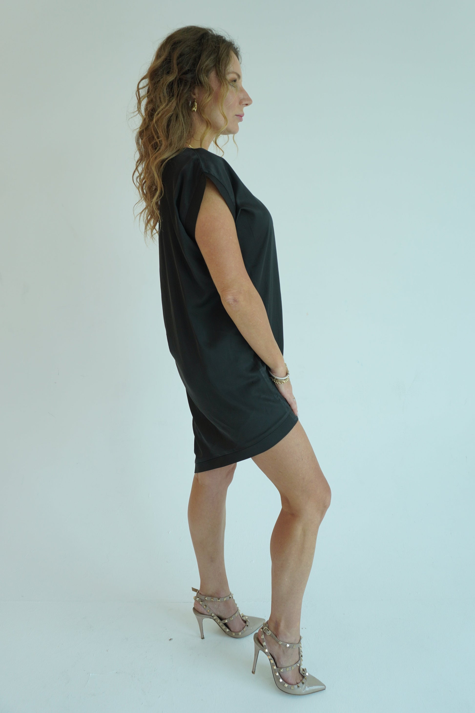 Cut from soft satin, it drapes beautifully across the body with its asymmetrical neckline and floaty dropped hem. The one-shoulder design brings an edge of sophistication while keeping the fit relaxed and versatile. With its lightweight feel and easy movement, this piece is perfect for both daytime glamour and evening allure.